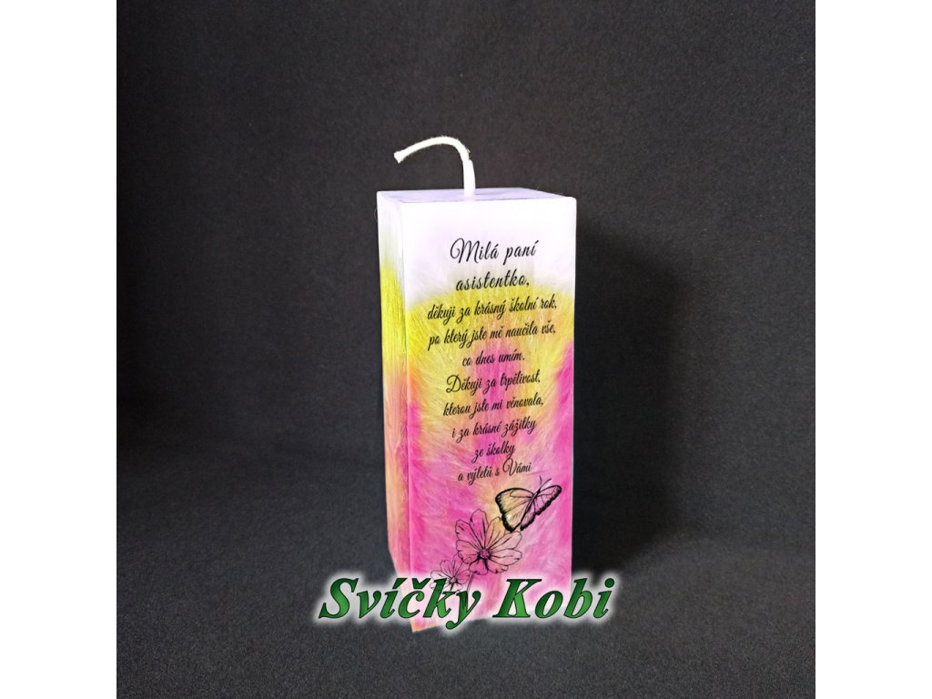 Svíčka s poděkováním paní asistentce do školky