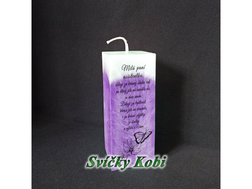 Vyberte si, komu Vaše dítko svíčku věnuje. Text  je vhodný jak pro rozloučení s pedagogem, tak  i pro pokračování v dalším roce. Na výběr máte hned z několika nádherných pestrých barev. A navíc bude rovnou zabalena do celofánu.
