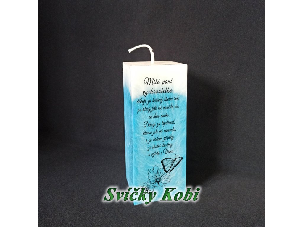 Vyberte si, komu Vaše dítko svíčku věnuje. Text  je vhodný jak pro rozloučení s pedagogem, tak  i pro pokračování v dalším roce. Na výběr máte hned z několika nádherných pestrých barev. A navíc bude rovnou zabalena do celofánu.