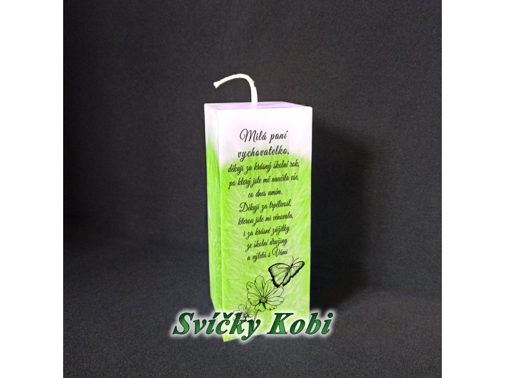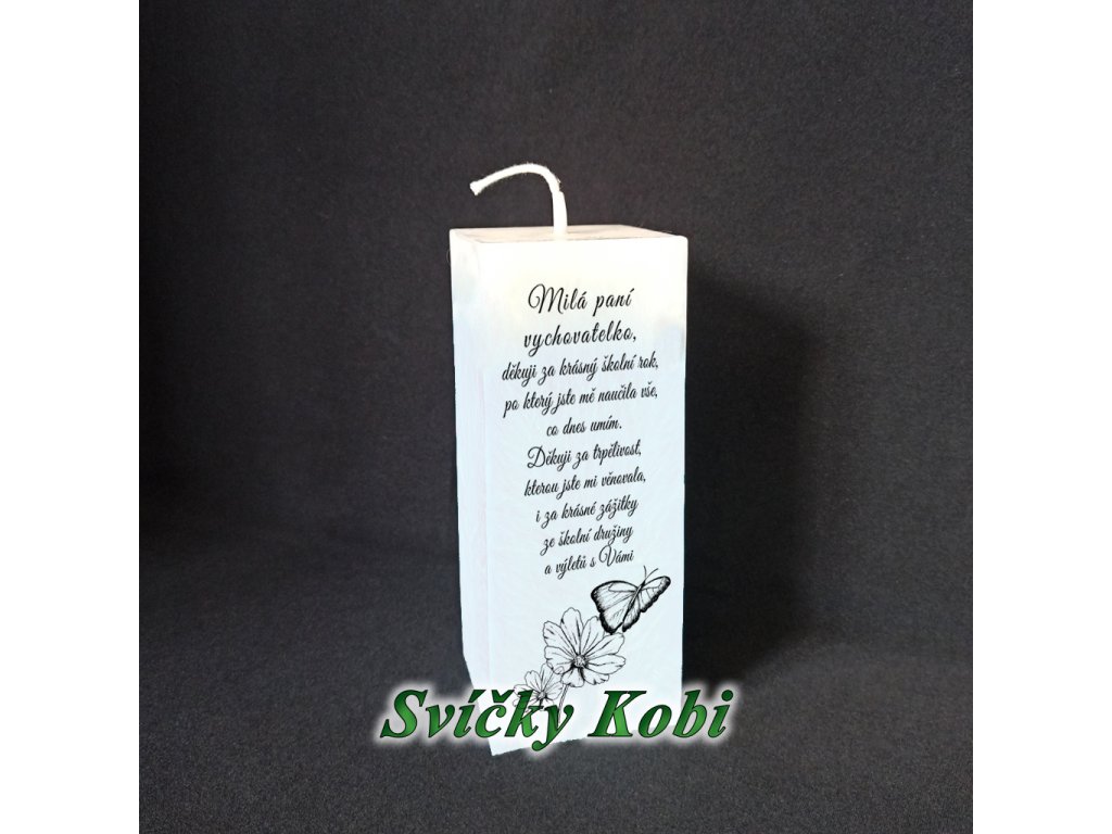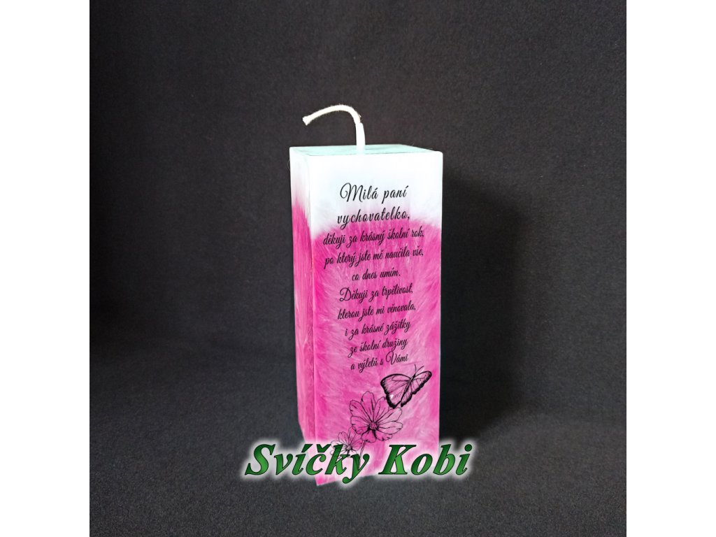 Svíčka s poděkováním paní vychovatelce do školy